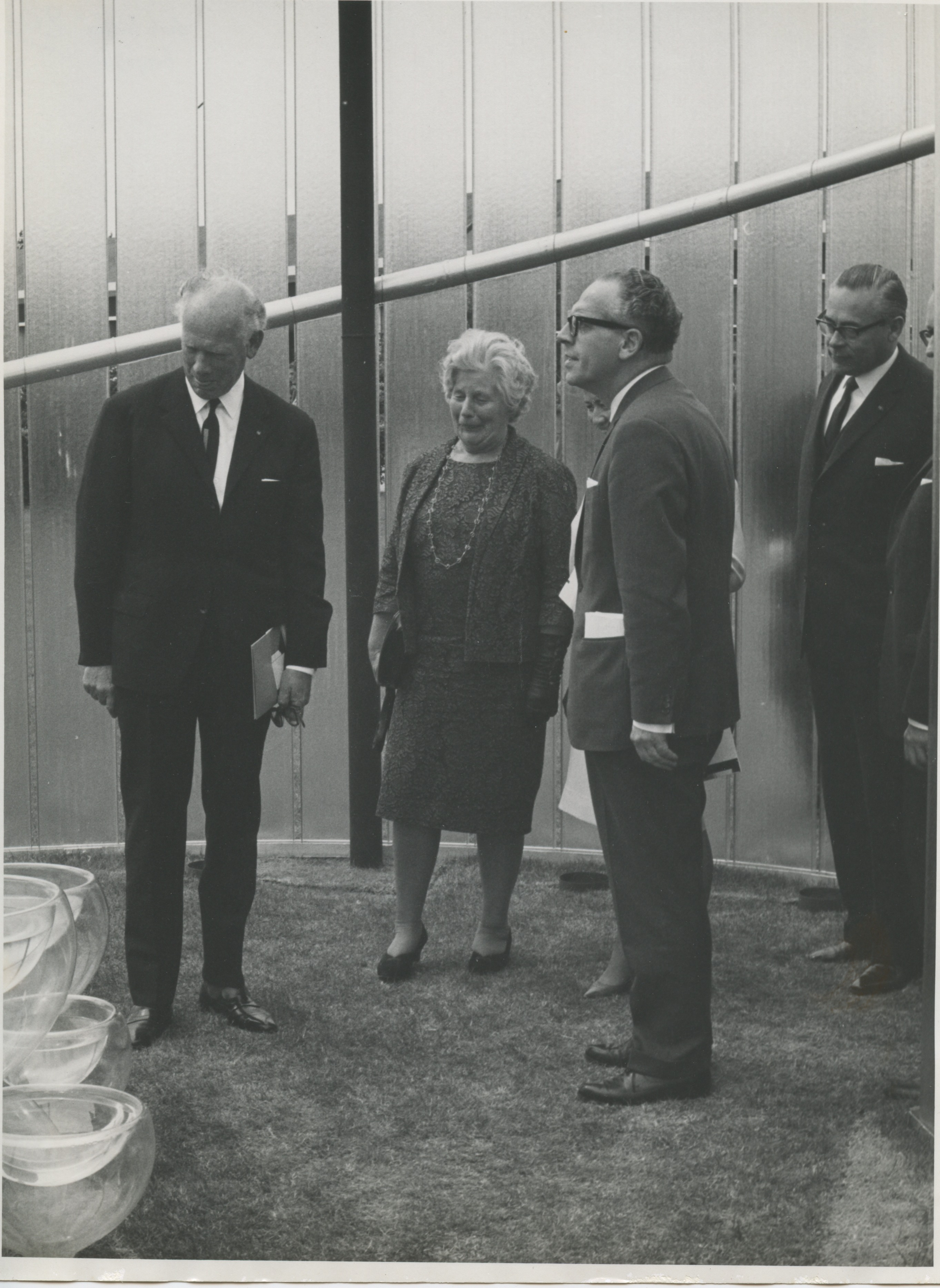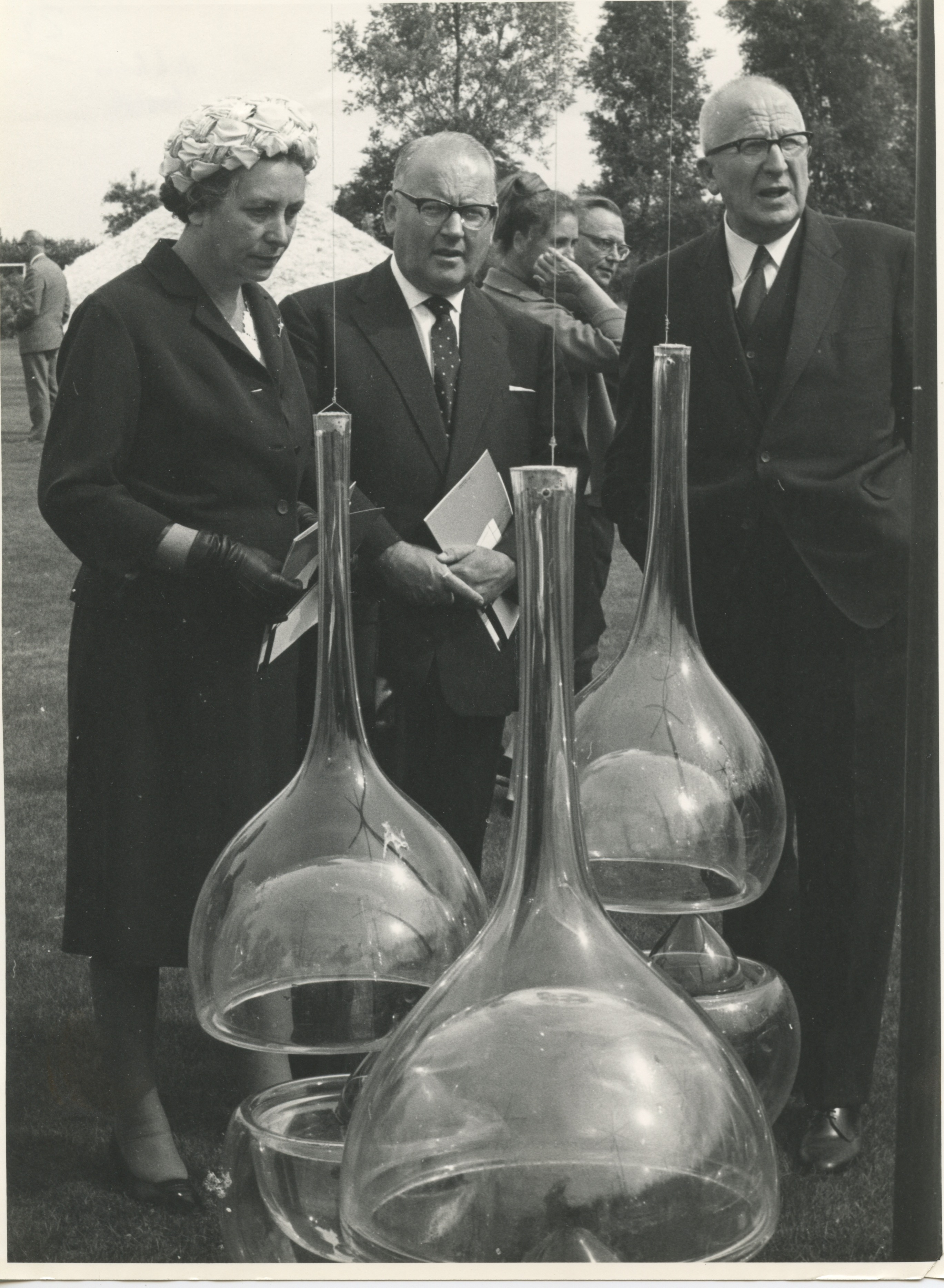 In een hoek op ‘zolder’ van De Ploeg Bergeijk ontdekte ik nog een fotomap met ruim 20 onbekende foto’s van de officiële opening. Op deze historische foto’s onder meer Andries Copier, Piet Blijenburg (directeur van De Ploeg) en Minister Vrolijk van CRM, lopend over de tentoonstelling. Ergens op de achtergrond is ook de berg glasscherven van Schippers zichtbaar. Een prachtig tijdsbeeld!