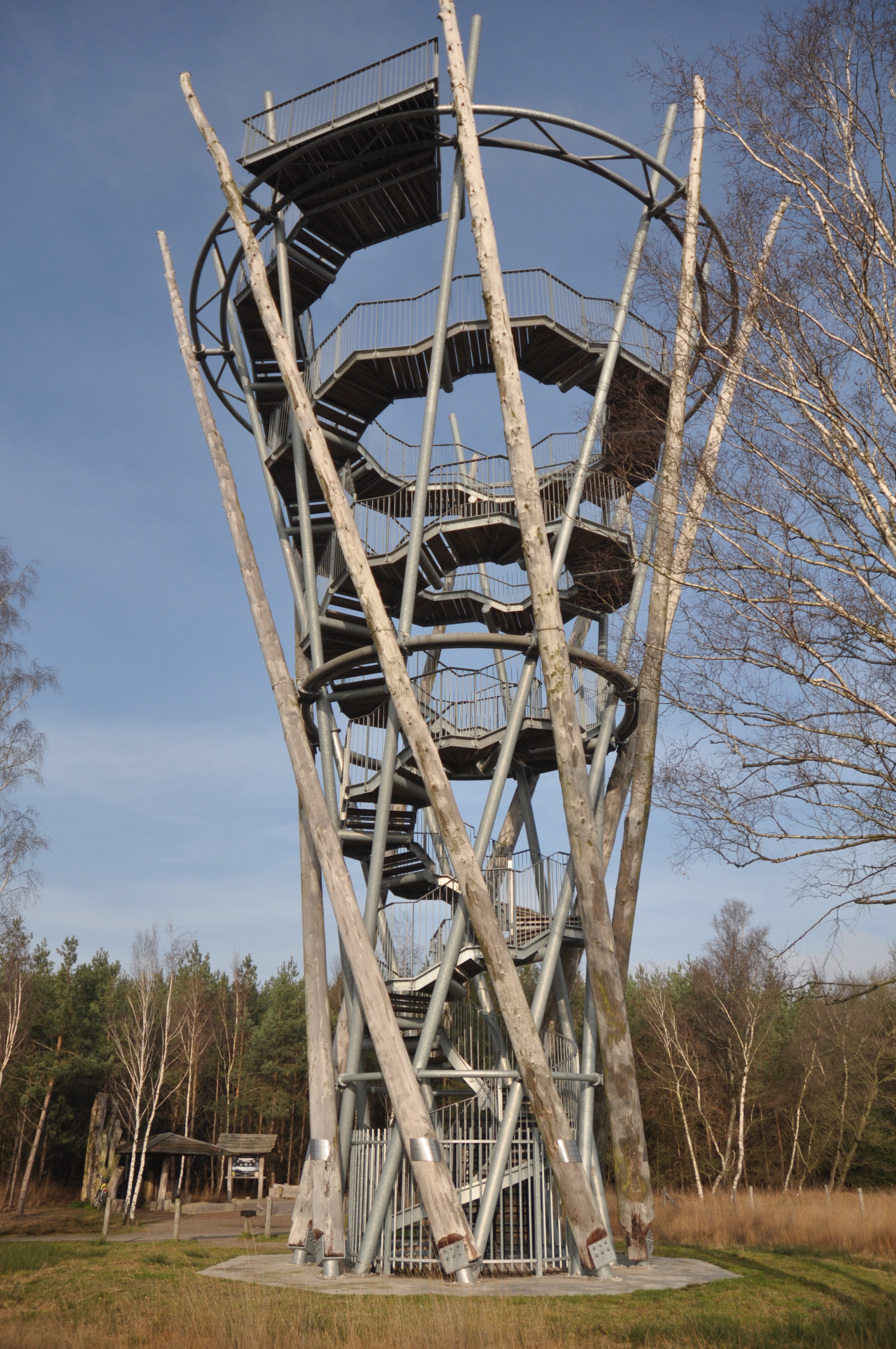 Komt het de beleving van het landschap wel ten goede, of is er sprake van horizonvervuiling zoals critici tegen een windmolenpark in zee aankijken? Het uitzicht op de omgeving is in ieder geval indrukwekkend, wat onze waardering van het natuurgebied flink versterkt. En zo’n uitkijktoren is een ijkpunt in het landschap dat als begin- of eindpunt van een wandeling kan dienen.