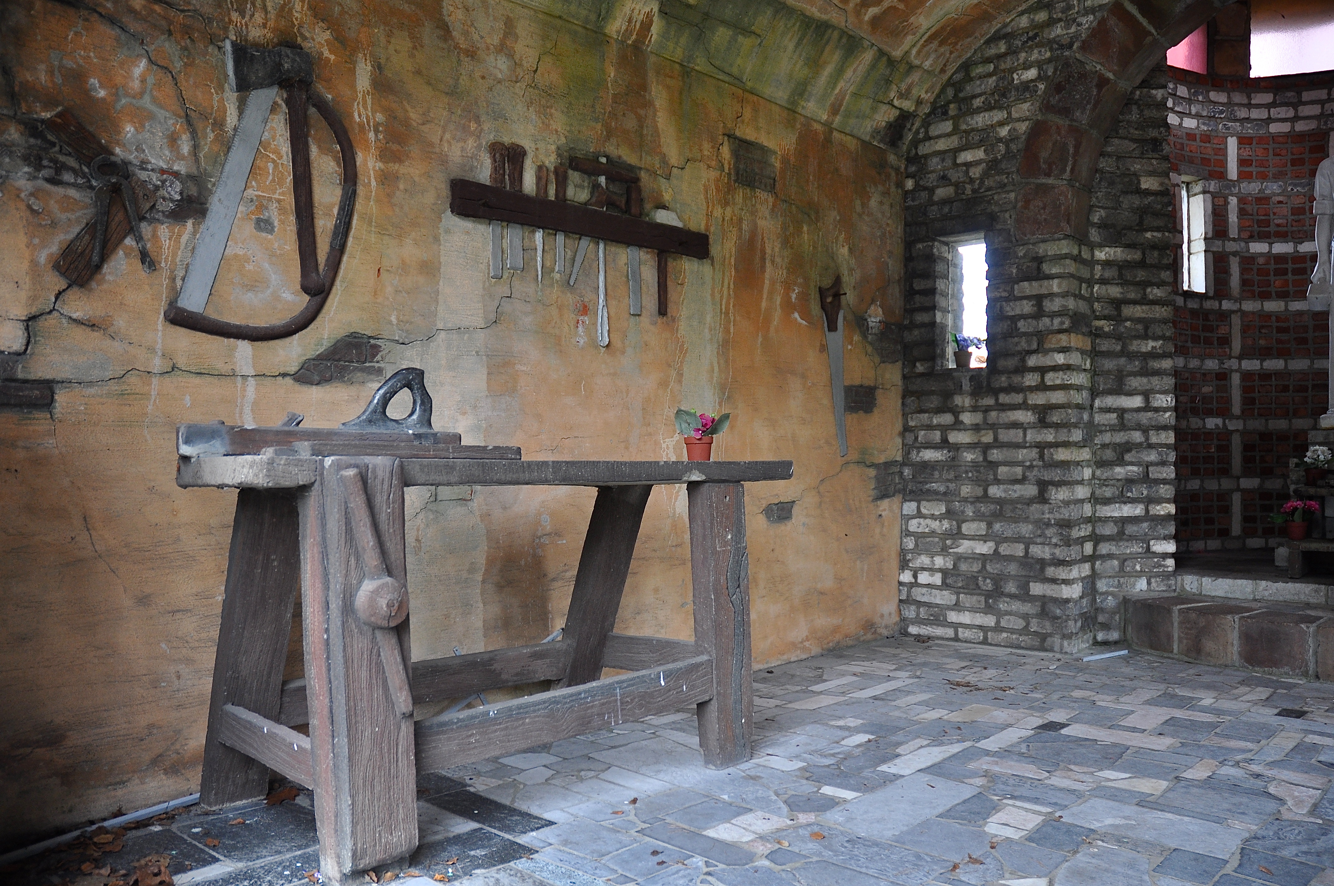 Nabij ligt ook nog een Josefkapel waar het echt sprookjesachtig wordt. Josef, timmerman van beroep, heeft hier een werkplaats met bijna levensecht gereedschap. Alsof hij zo aan de slag kan gaan met zaag en beitel, enthousiast aangemoedigd door de ezel in de stalopening. Hoe toepasselijk voor Lommel Werkplaatsen.