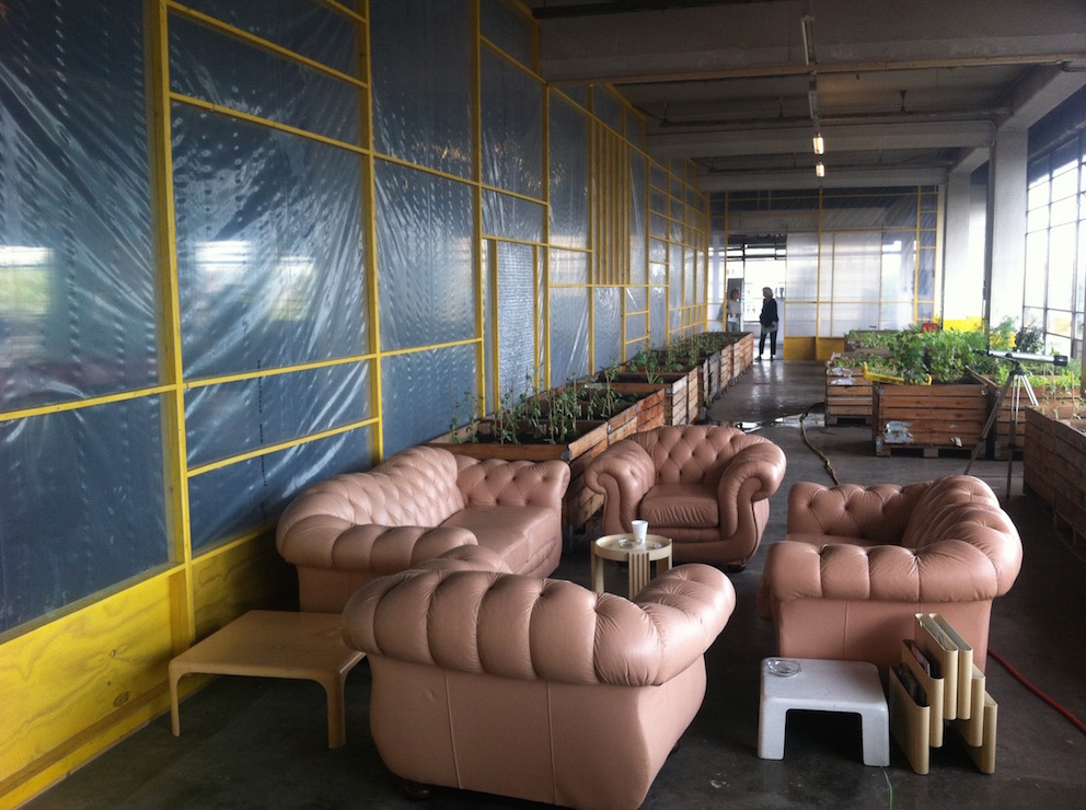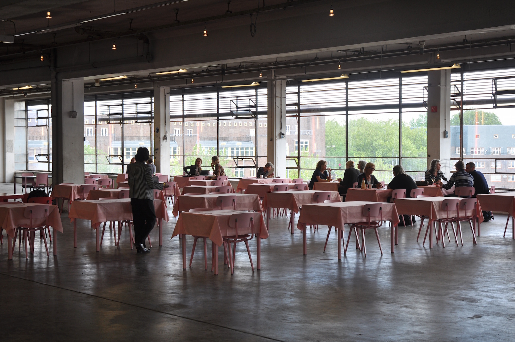 Het Citroën Restaurant op de bovenverdieping, ietwat geel, veel roze, mooi uitzicht, goed menu!