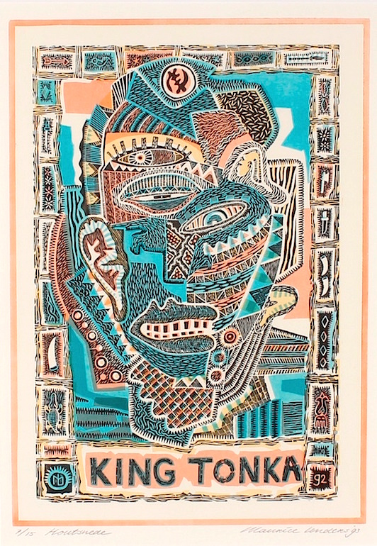 King Tonka, Maurice Lenders, houtsnede, 1993, 90 x 70 cm, oplage 7/15, ingelijst, prijs € 95,- (exclusief 40% korting)