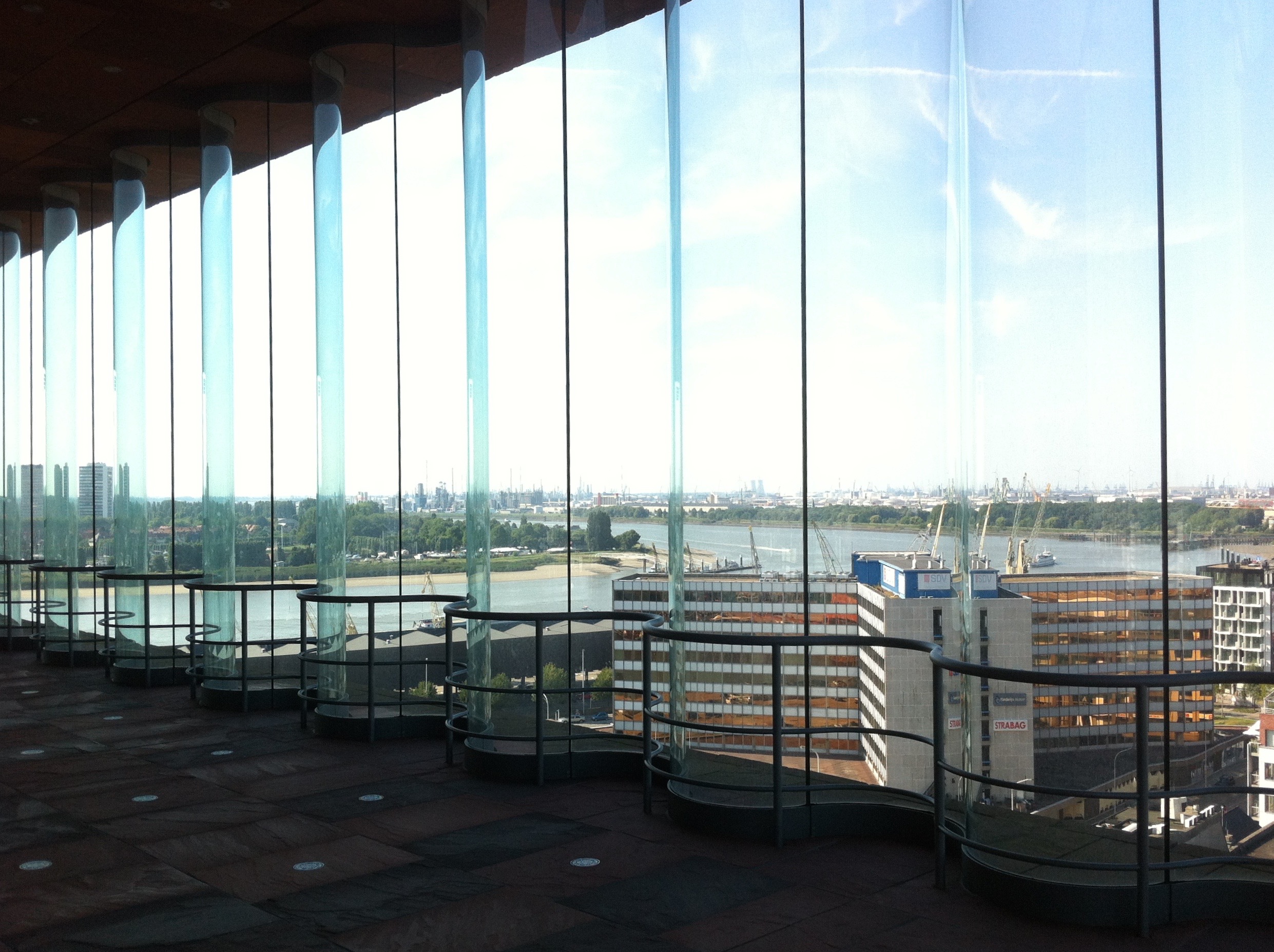 Tussen de doks ligt het Museum aan de Stroom (bekend als het MAS) ontworpen door de Nederlandse architecten Riedijk Neutelings. Bijzondere architectuur met gestapelde verdiepingen en golvende glasgevels die op symbolische wijze de Scheldestroom resoneren. Binnen zijn wisselende erfgoedexposities te bekijken, maar vooral bijzonder is het panoramadak boven op het gebouw. Je kunt het los van het museum gratis bezoeken van ’s ochtends vroeg 9.30 uur tot middernacht! Slingerend via roltrappen en afwisselend stukjes wandelboulevard bestijg je met weinig moeite het gebouw. Boven – op 60 meter hoogte – wacht een fenomenaal uitzicht over de haven, de binnenstad en het Eilandje.