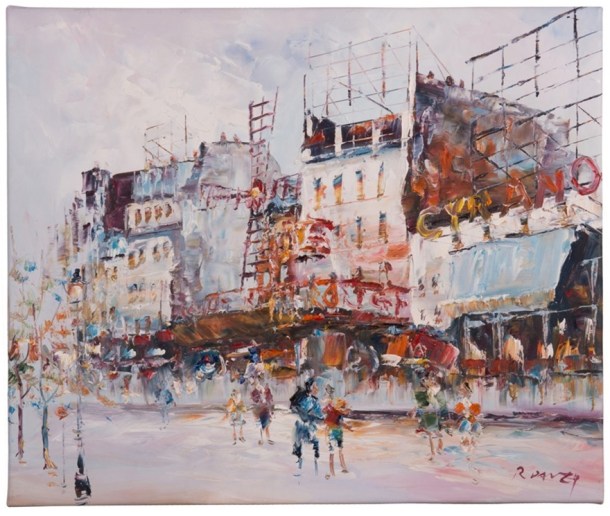- R. Davey, ‘Parisien street scene of the moulin rouge’, aangeboden via Artbrokerage
