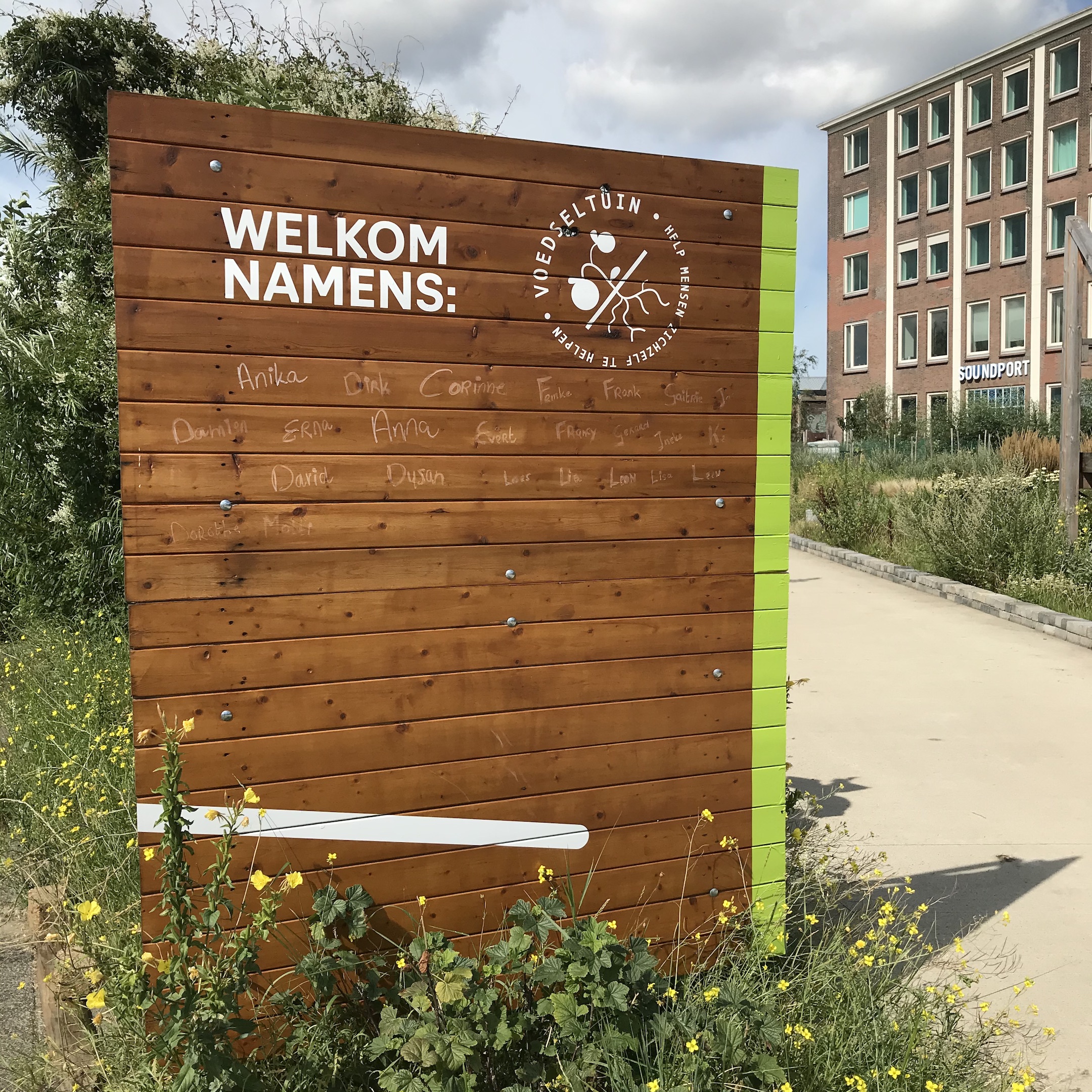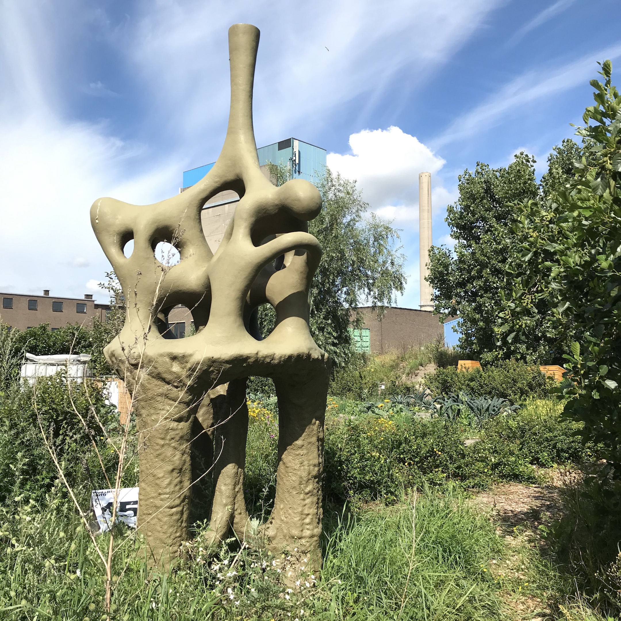 De beeldenroute meandert losjes verder door De Voedseltuin, een sociaal project waar vrijwilligers een fantastische aangelegde ecologische moestuin runnen en daarmee de voedselbank van groenten voorzien. Een initiatief dat alle sympathie en steun verdient.