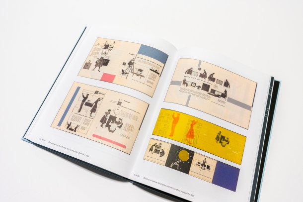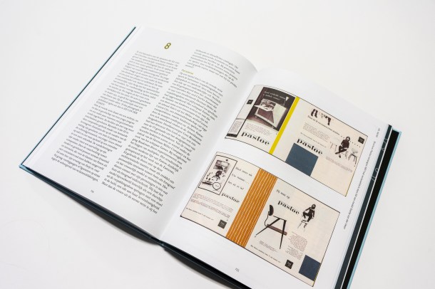 Spreads uit het boek met UMS Pastoe-brochures, rechtsonder Gerda van der Veen, 1955 / © foto Louisiana van Onna