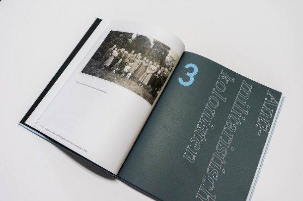 Spreads uit het boek met UMS Pastoe-brochures, rechtsonder Gerda van der Veen, 1955 / © foto Louisiana van Onna